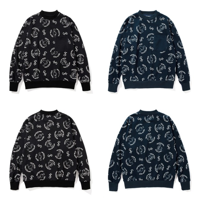 GOOD HELLER / BONE LOGO ALLOVER PATTERN CREW SWEAT