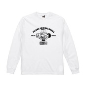 ポップなテイストで描かれたタトゥー風のシェイクハンドイラストをフロントにプリントで施しています。