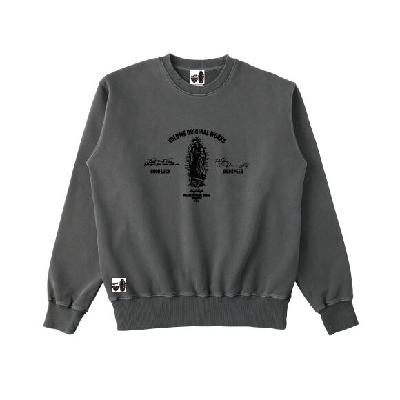 フロントにはレッジ風に仕上げたVOLUMEORIGINAL WORKS定番のグアダルーペマリア・グラフィックをベルベットを圧着したかの様な仕上がりのフロッキー加工で仕上げています。