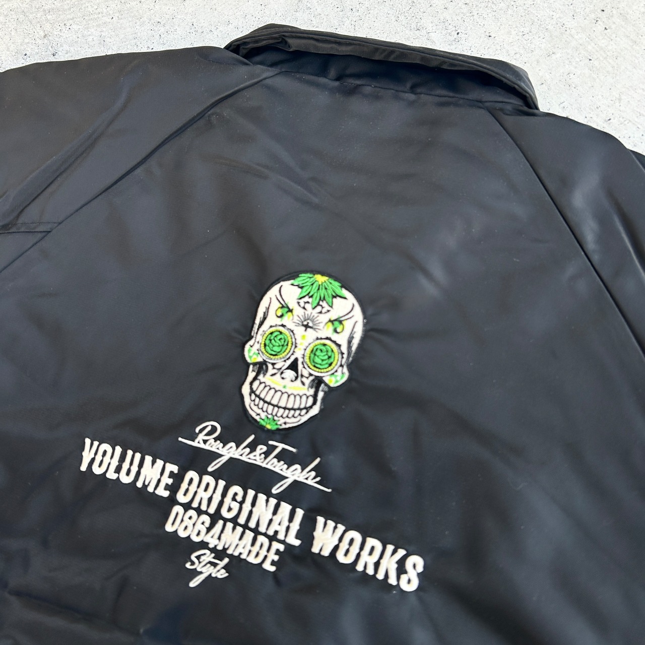 左胸にロゴアイコン、右襟にスモールロゴアイコン、背中にカラベラを刺繍で施した圧巻の仕上がり。