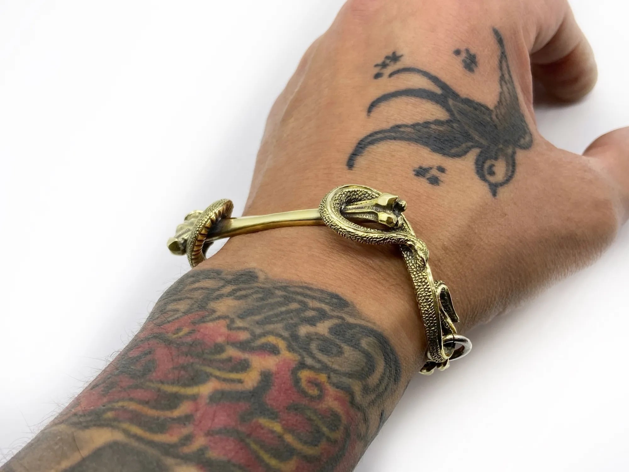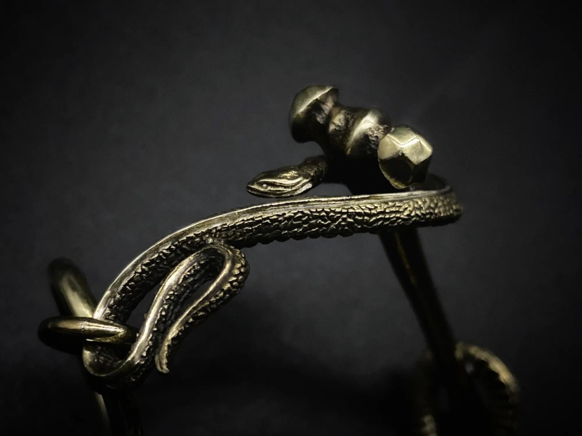 細かな掘り込みが目を引くスネークと骨を組み合わせたブレスレット。