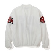 袖にはも同じく2本ラインと74のナンバロングを、左腕にはアクセントでアメリカンテイストなワッペンをオン。