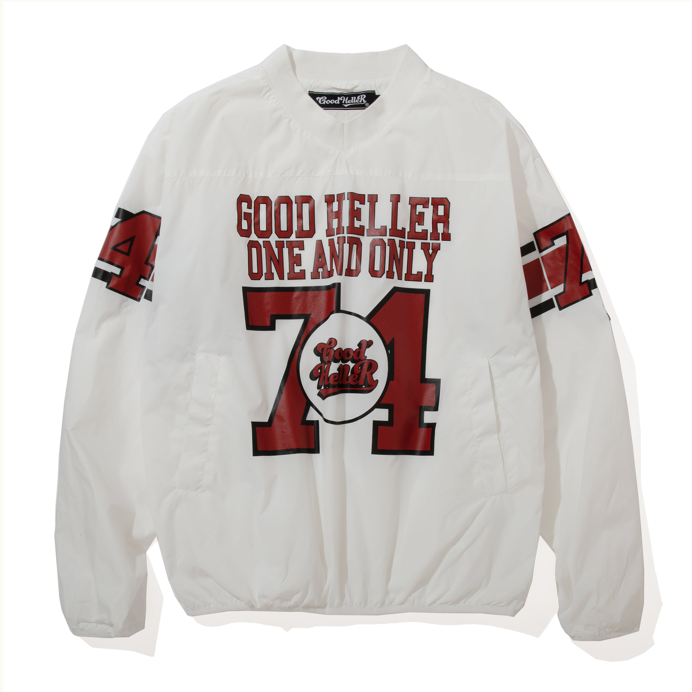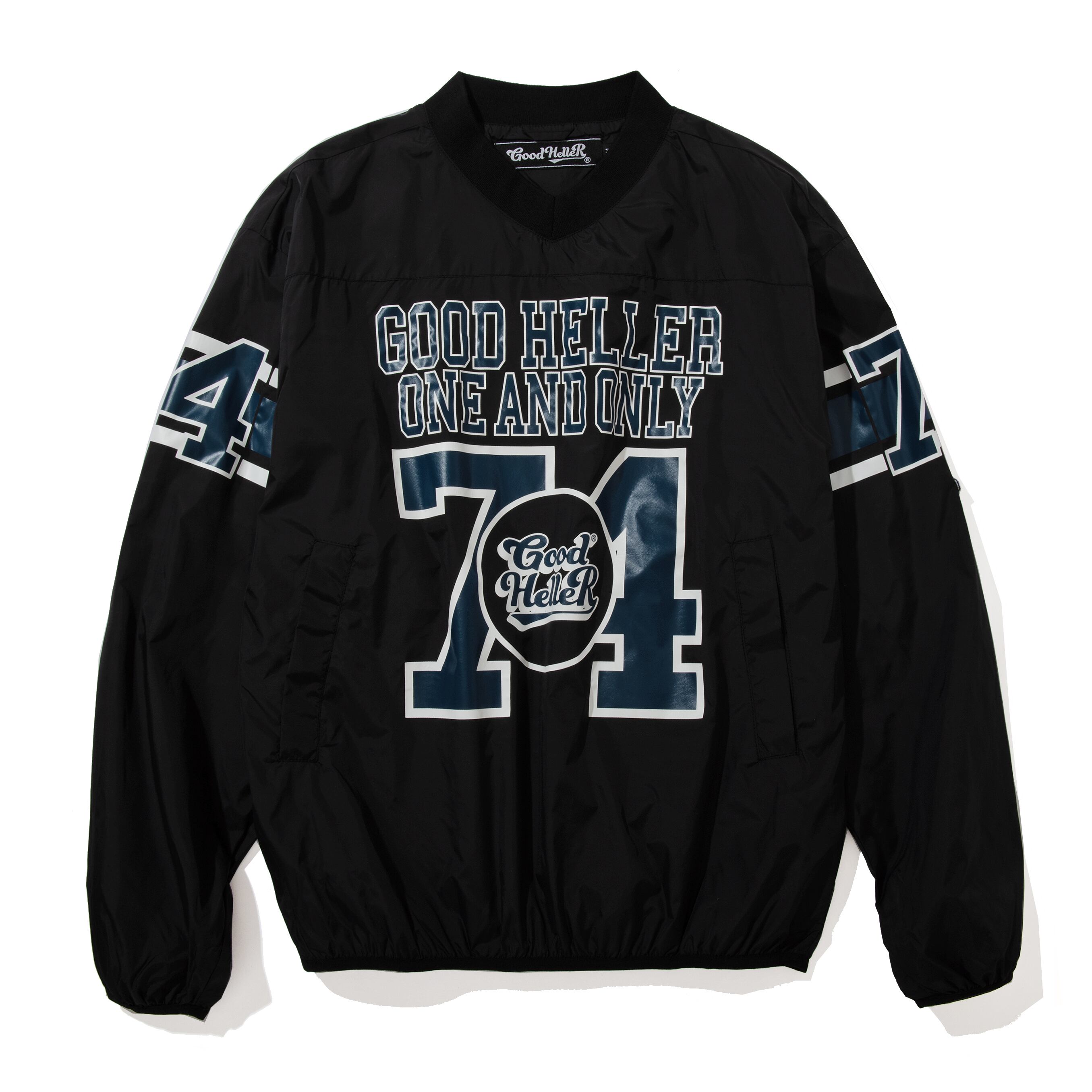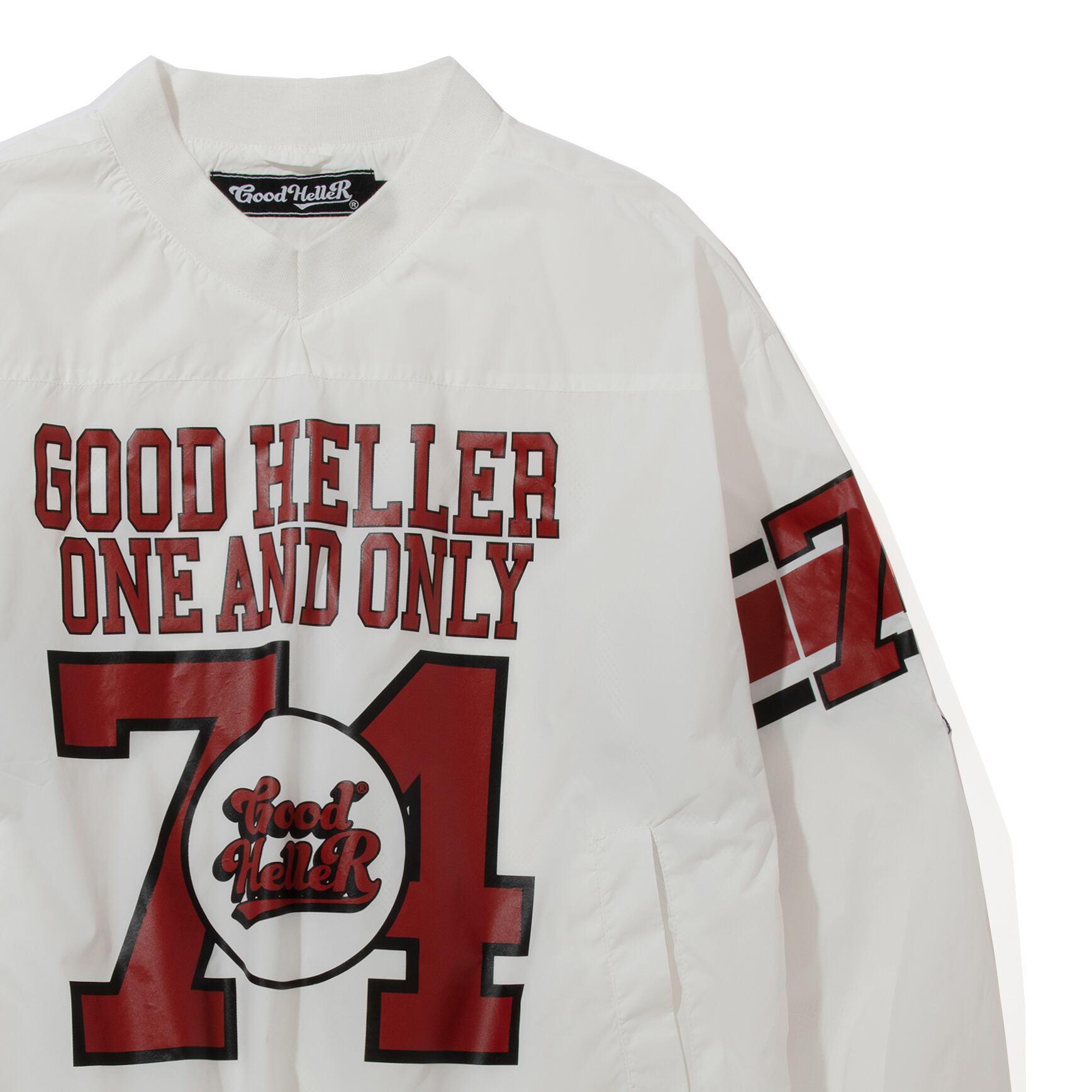 フロントには74のナンバリングとブランド名を組み合わせたオリジナルカレッジロゴを配したナイロンフットボールTシャツ。