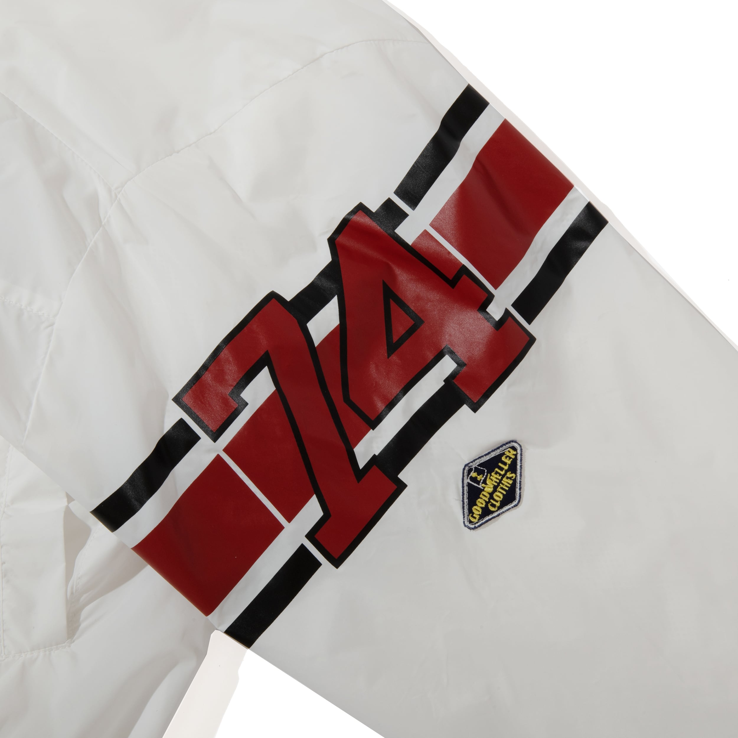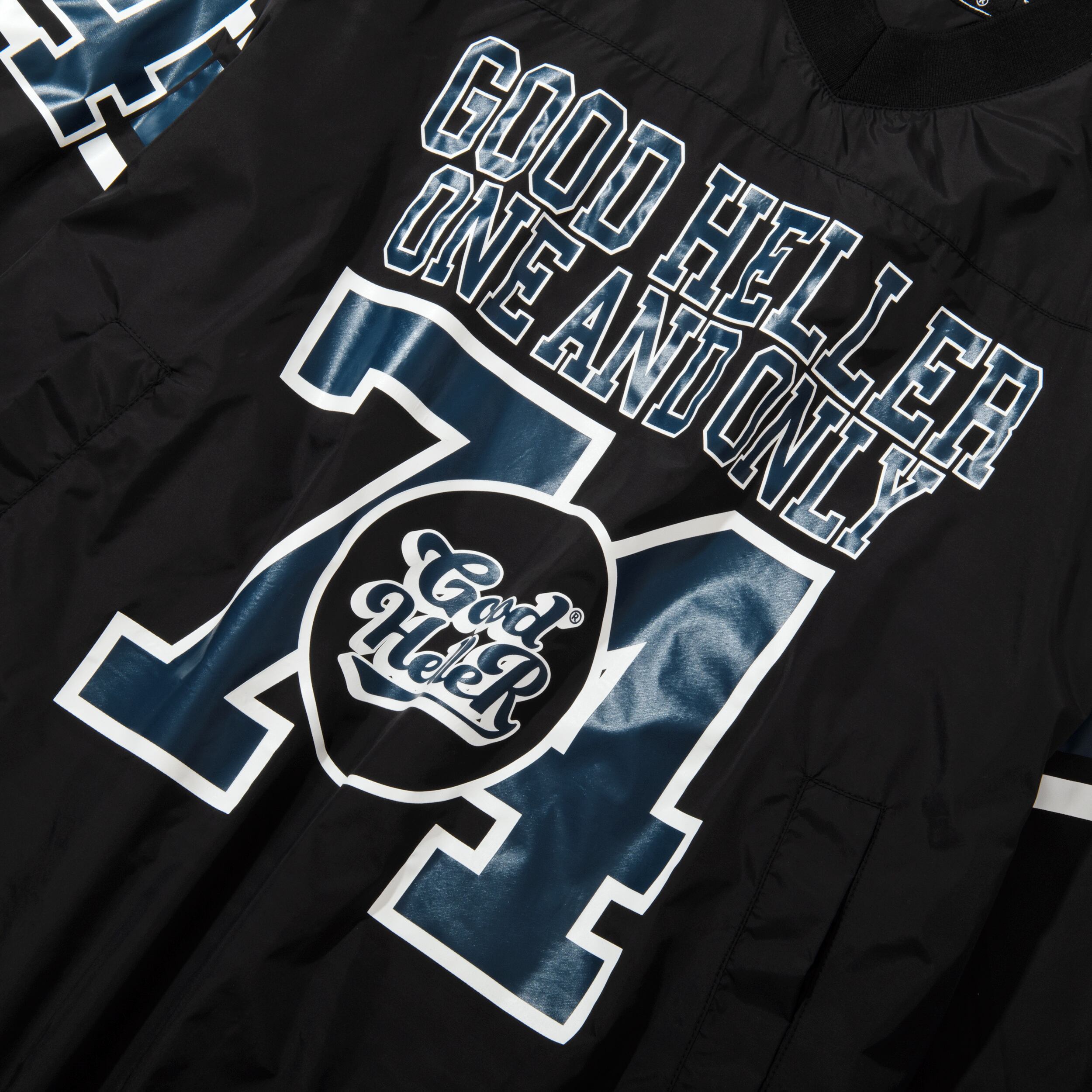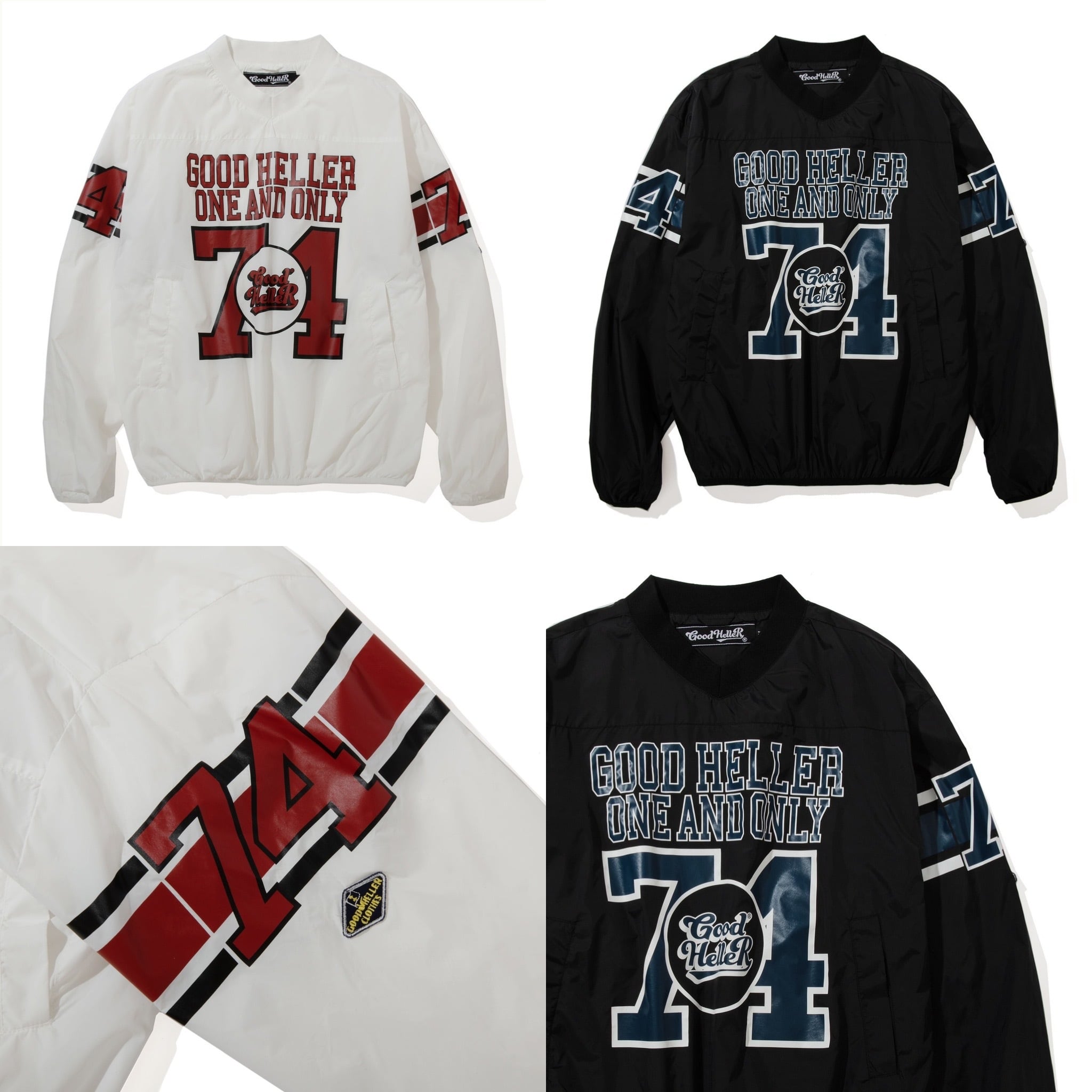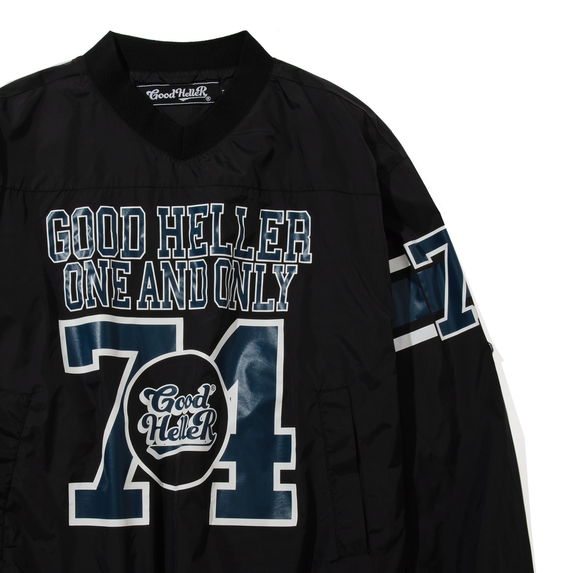 フロントには74のナンバリングとブランド名を組み合わせたオリジナルカレッジロゴを配したナイロンフットボールTシャツ。