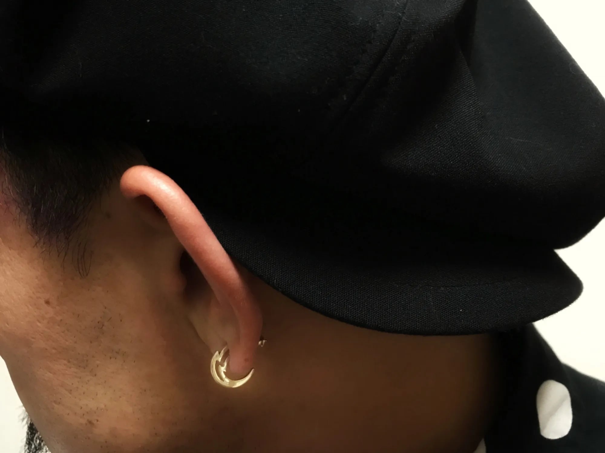 稲妻をモチーフにしたハーフ・フープ型のピアス。