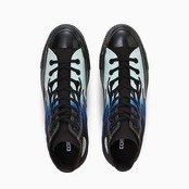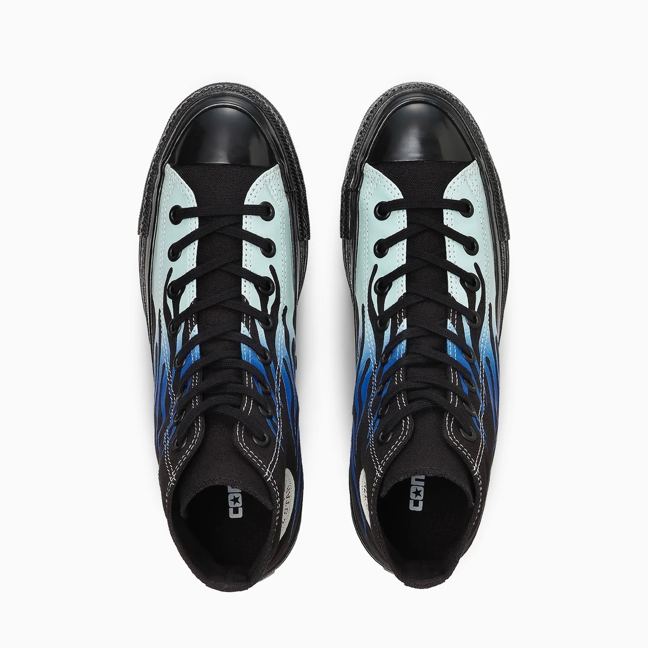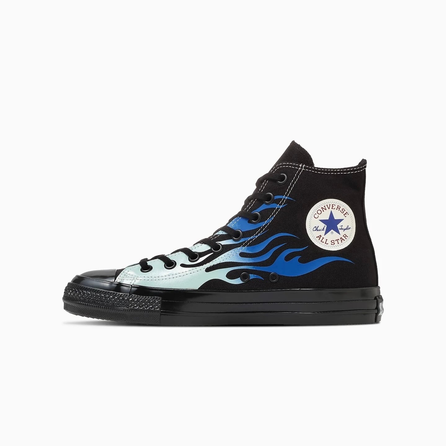 古き良きアメリカの車やバイクのカスタムカルチャーで用いられる、フレイムパターンをアッパーにプリント。