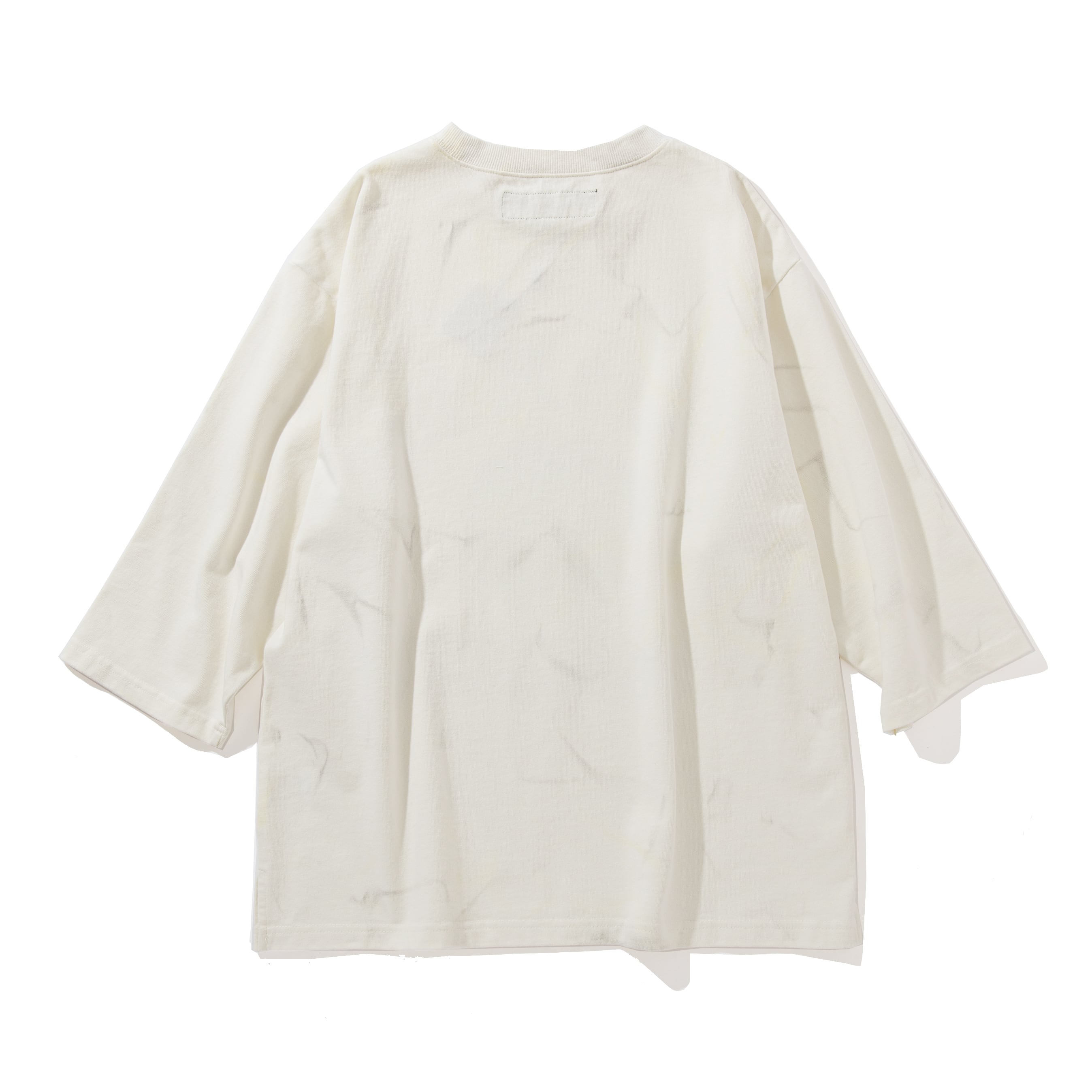 9.5OZのヘビーウェイトボディを使用した七部袖Tシャツは着丈は長すぎず、アームホール、身幅はややゆったりとした着易さ重視のシルエットとなります。