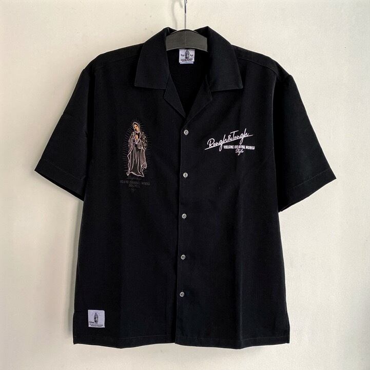 グアダルーペマリア刺繍を右胸にロゴ刺繍を左胸に施したオープンカラーシャツです。