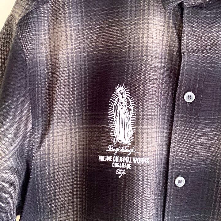 右胸にグアダルーペマリア刺繡、左襟剣先にロゴ刺繍を施しています。